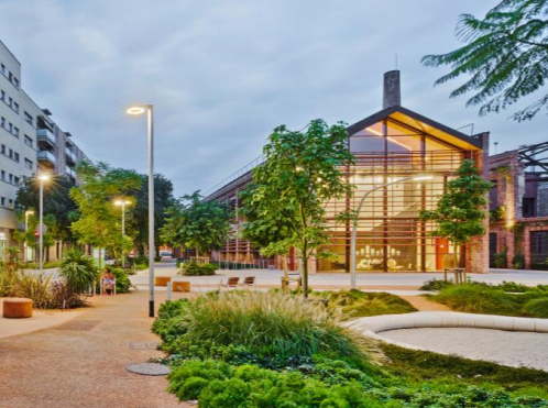 El edificio Blue@ esta ubicado en el distrito tecnológico 22@ Norte de Barcelona. Situado en Cristóbal de Moura, el eje verde que ya conecta el Parque de Poble Nou y el Parque de Besós.