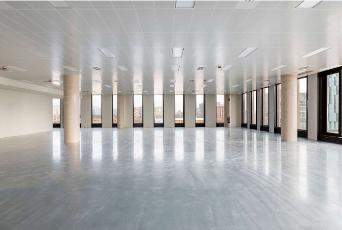 Plantas amplias y diáfanas, algunas con terrazas privativas, e instalaciones modernas, flexibles y de alta eficiencia energética.